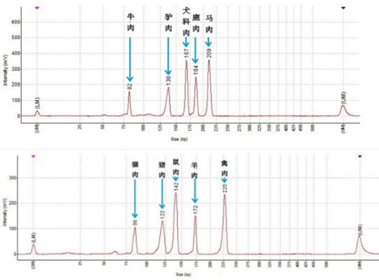 圖6 10種肉類(lèi)鑒定 圖7 羊奶粉、牛奶粉的鑒定