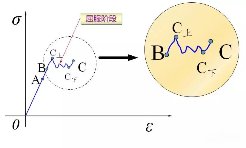 下屈服強(qiáng)度:在屈服期間,不計(jì)初始瞬時(shí)效應(yīng)時(shí)的較低應(yīng)力。