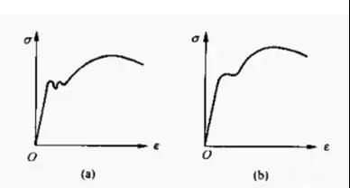 a是低碳鋼的應(yīng)力-應(yīng)變曲線,它有鋸齒狀的屈服階段,分上下屈服,均勻塑性變形后產(chǎn)生縮頸,然后試樣斷裂;