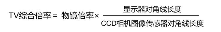 PC顯示器倍率(TV綜合倍率)是指相機(jī)攝像元件對角線長度與PC顯示器屏幕對角線長度之比。當(dāng)顯微鏡通過CCD 設(shè)備連接至電腦上進(jìn)行成像觀察時(shí),就需要評價(jià)顯示器倍率了。