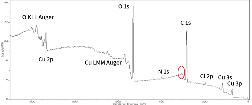 下圖為典型的全譜譜圖,在全譜中我們能明顯看到本底是高結(jié)合能端高而低結(jié)合能端低的形狀。