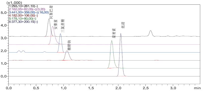 六種甜味劑的MRM色譜圖