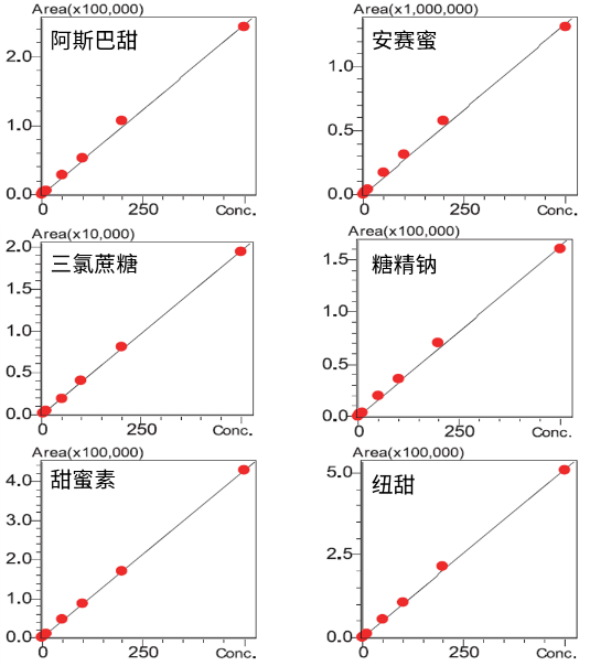 建立了使用LC-MS/MS法測(cè)定白酒中紐甜、糖精鈉、 甜蜜素、 三氯蔗糖、 安賽蜜和阿斯巴甜的方法,該方法在3.5 min之內(nèi)可完成6種甜味劑的分離分析,且線(xiàn)性范圍寬,校準(zhǔn)曲線(xiàn)的相關(guān)系數(shù)良好。重復(fù)性實(shí)驗(yàn)保留時(shí)間和峰面積的相對(duì)標(biāo)準(zhǔn)偏差分別在 百分之(0.04- 0.37) 和 百分之(0.97 - 4.73)之間,系統(tǒng)良好。該方法快速、 靈敏,適合白酒中甜味劑的檢測(cè)。
