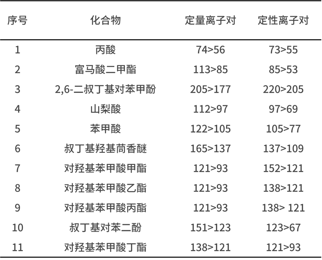 GC-MS/MS法檢測(cè)食品中11種防腐劑及抗氧化劑含量